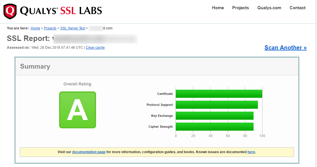这是对于你的 TLS/SSL 的一个总体评分,我这里评分为 A,看来还不错。有这样的界面算是成功了。